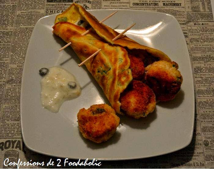 Bonjour à vous les Foodaholic :) Nous revoici aujourd'hui pour la Battle Bread 2 ! Organisée par la copinaute trop sympa Nath du blog Pourquoi je Grossis, on planchait ce mois ci sur le thème des sandwichs ! C'est un peu par hasard qu'on a obtenu notre recette mais c'est parfois comme ca qu'on arrive à des trouvailles en cuisine ! On propose donc un sandwich fait avec un pain qui ressemble à du pain pita sans en être un ! Pour la garniture, on accompagne ca d'une petite sauce toute douce yaourt, citron et câpres, qui s'accommode bien avec les boulettes de poisson ! On a hâte de se retrouver pour la 3eme battle bread, mais aussi pour la salad party à laquelle on participe bien sûr ! On va essayer de rester fidèle à ces événements qui nous permettent de trouver de nouvelles copinautes et de découvrir de nouvelles recettes. Mais il est vrai qu'on a un peu délaissé les batailles et battle food, soit par manque de temps, soit par manque d'inspiration soit les 2 parfois (du style, je trouve l'idée mais je me rends compte que le délai est dépassé...) En espérant que tout ca revienne dans l'ordre :) en attendant, voici notre proposition pour la Battle Bread 2 :)